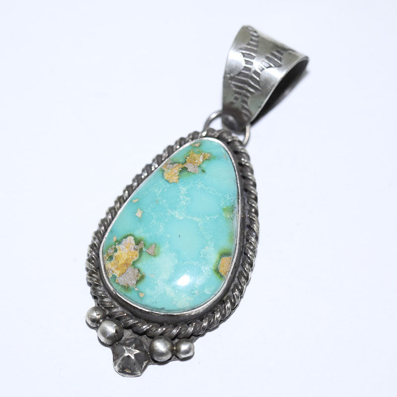 Sterling silver pendant is set with Stabilized Sonoran Gold Turquoise which has a starburst at the bottom of the stone with two silver beads on each side.