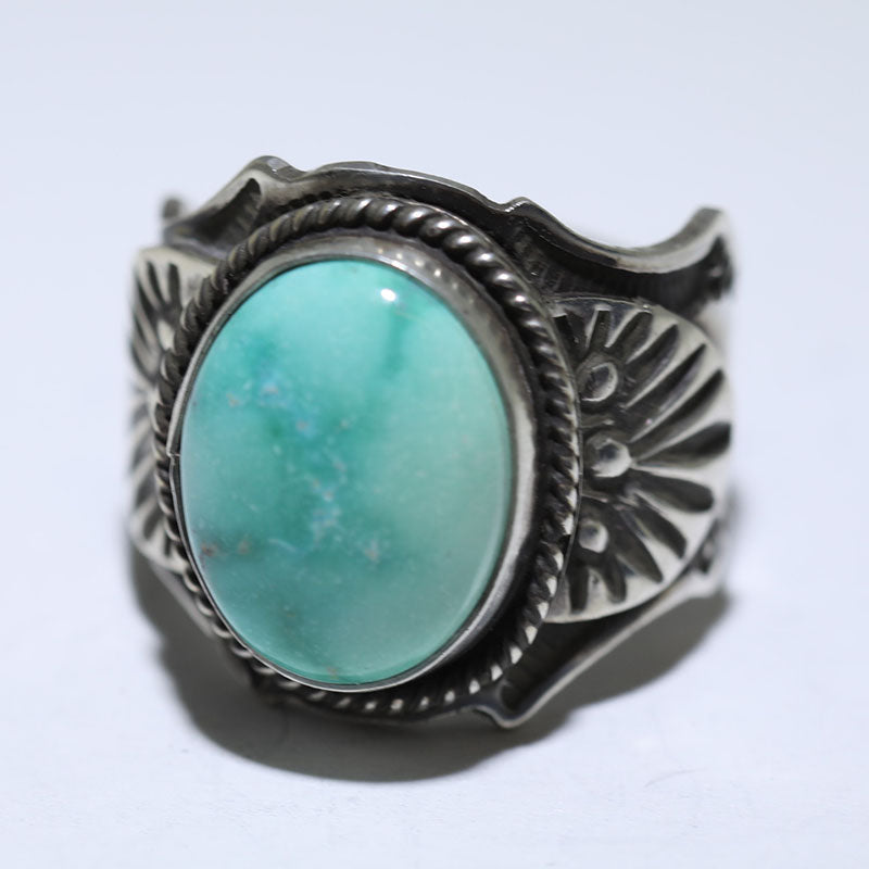 Sterling silver ring features hand stamped designs and is set with Sonoran Gold Turquoise which is surrounded by twist wire.