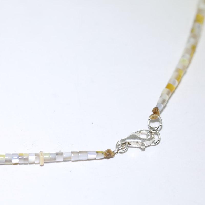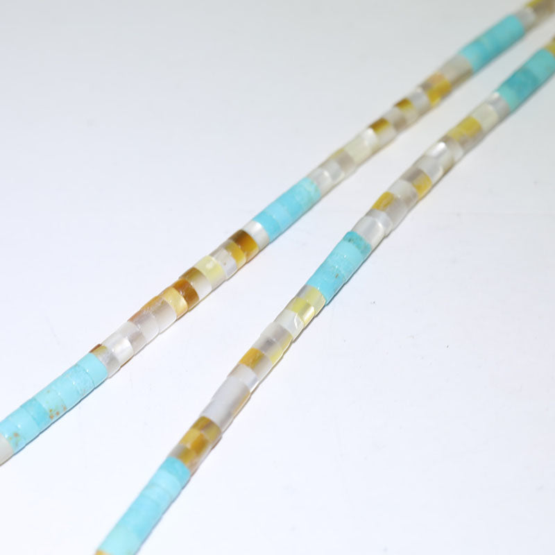 Beautiful handmade necklace is made with Mother of Pearl and Turquoise heishi beads.