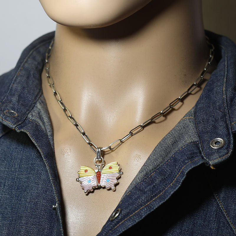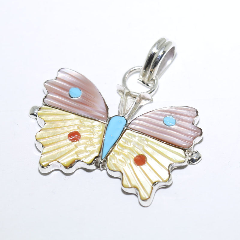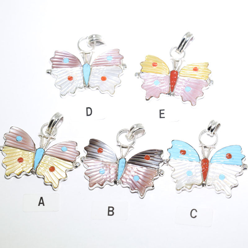 Beautiful sterling silver pendants are shaped like a Butterflies and inlaid with different color combinations to choose from.