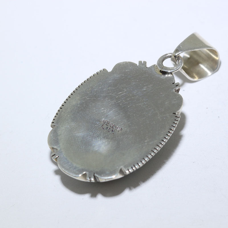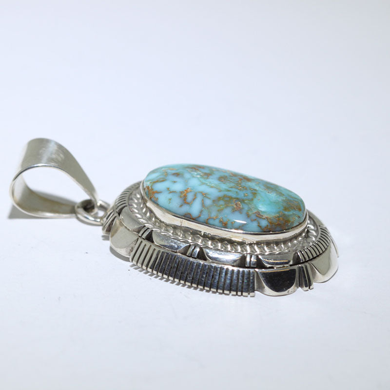 Handmade silver pendant by Navajo Artist, Robin Tsosie. Stone is Dry Creek turquoise from Navada. pale green/blue with brown matrix. Really popular stones for Native American Artists.