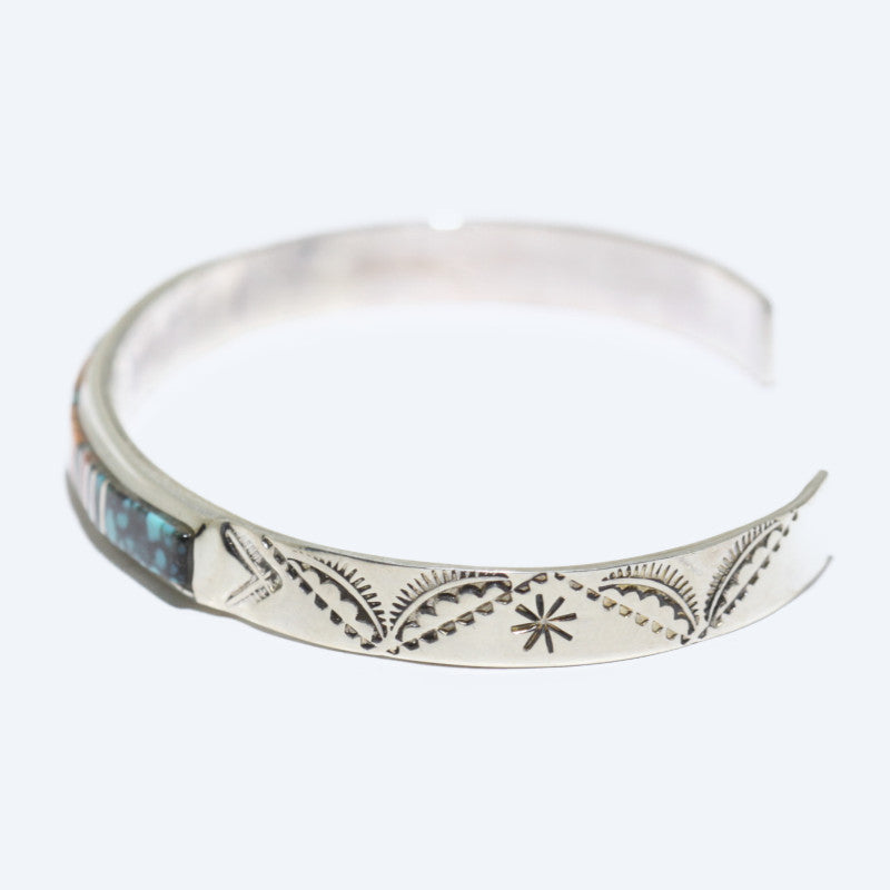 Sterling silver inlay with spiny shell, turqouise and blue lapis.
