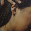 Sterling silver earrings is set with Onyx stones. These earrings are created by a Navajo artist.