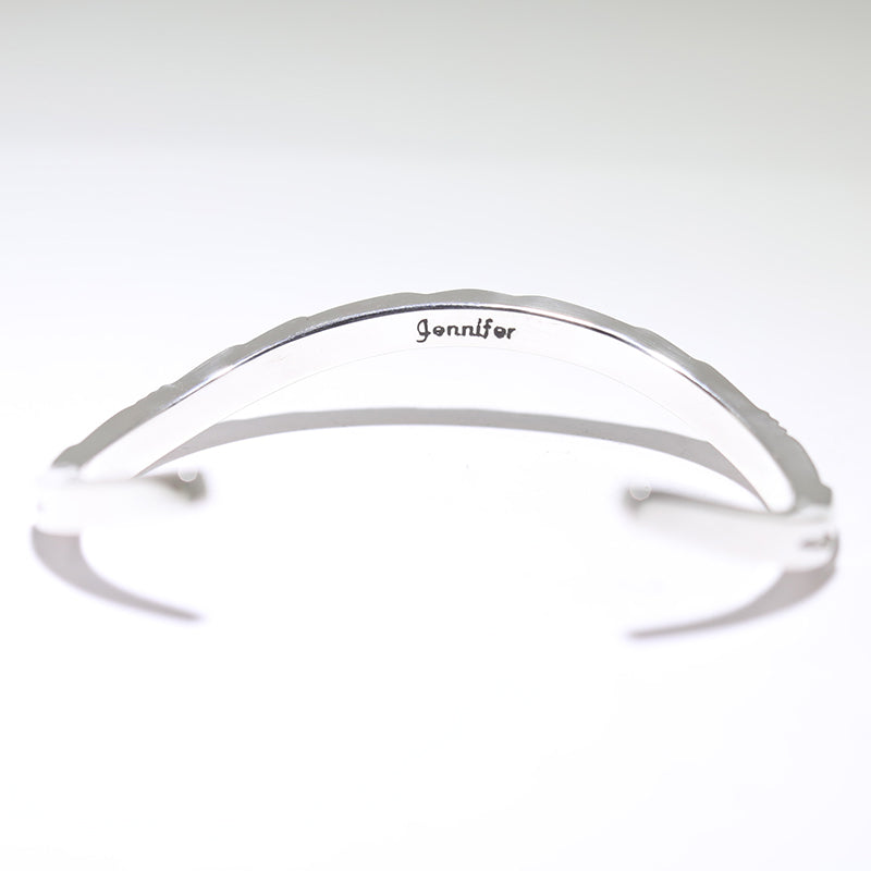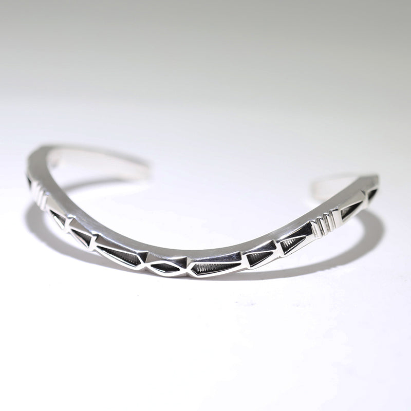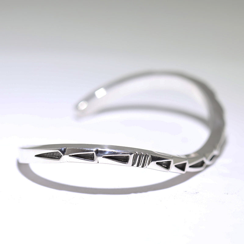 Beautiful sterling silver bracelet features unique designs on thick square wire.