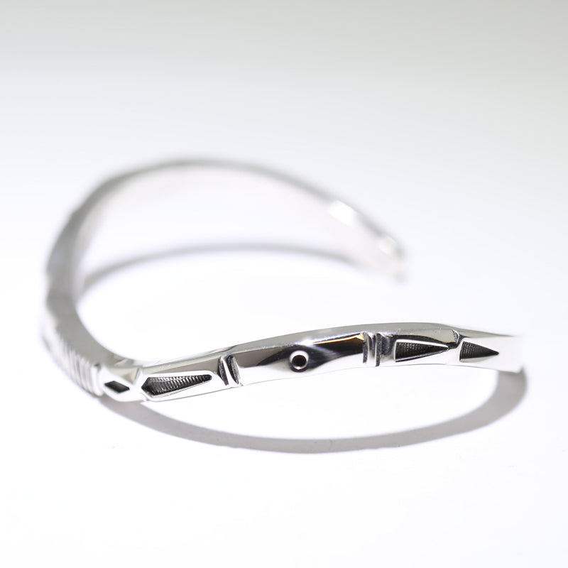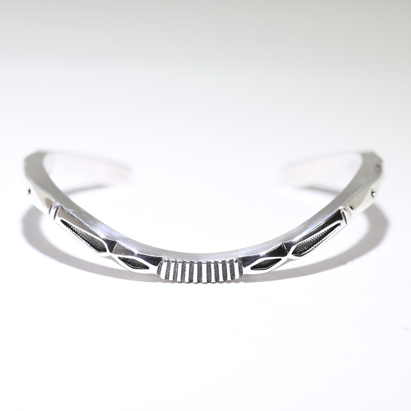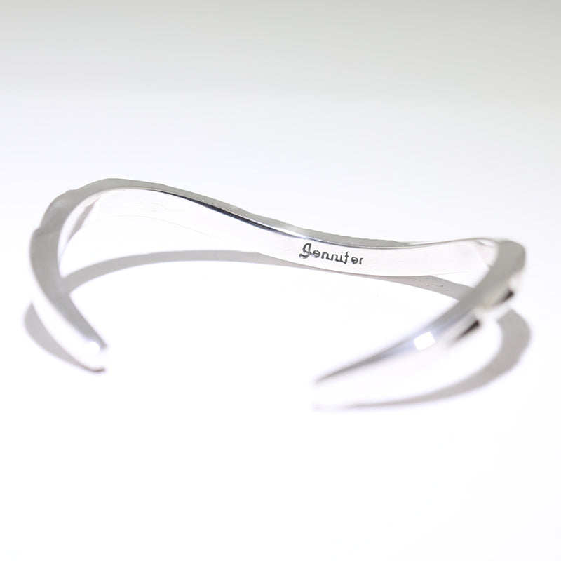 Jennifer Curtis was born in 1964, in Keams Canyon, AZ. She is a respected Female Artist who learned silversmithing from her father, Thomas Curtis Sr. who is one of the pioneers of traditional stamp work. She is known for her stamp and file designs with heavy-gauge sterling silver.