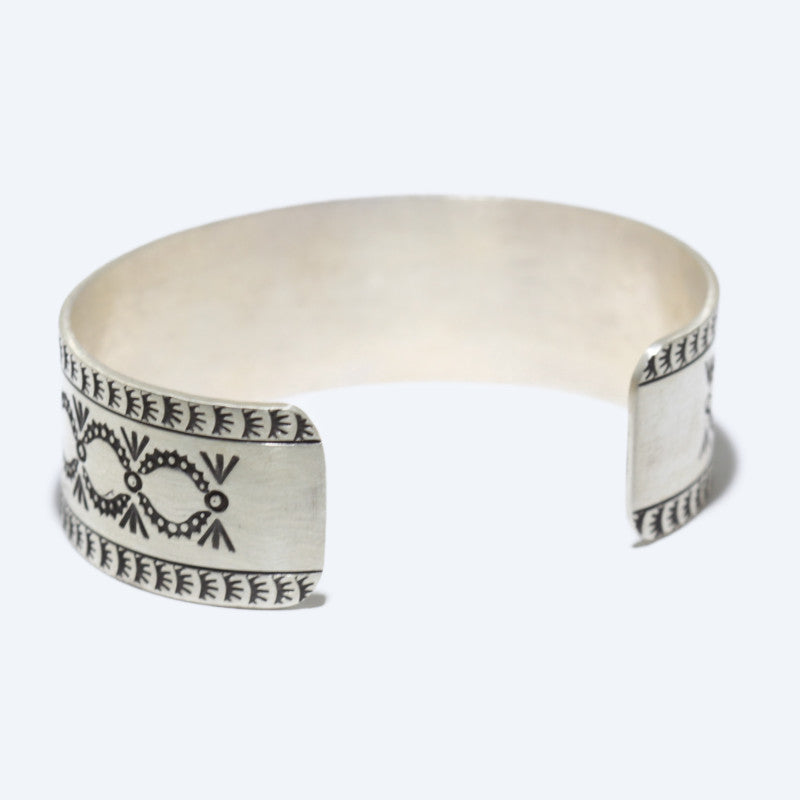 Sterling silver bracelet is designed, and hand stamped by a Navajo artist.