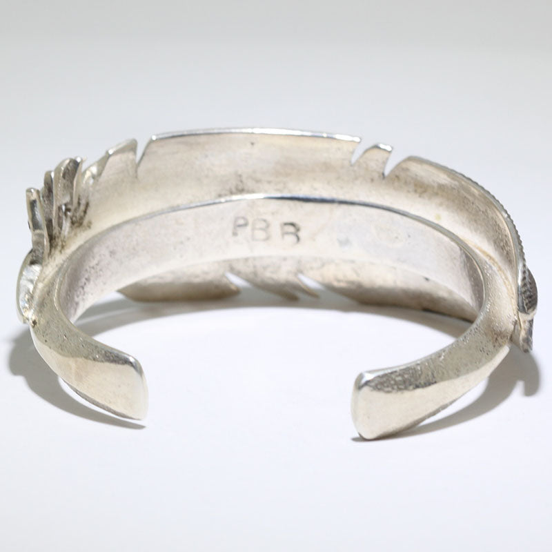 Sterling silver bracelet is designed in the shape of a feather; created by Philander Begay.