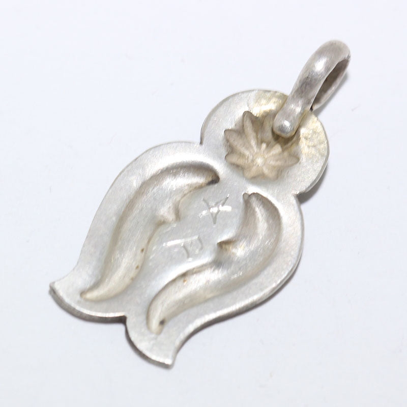 Sterling silver pendant features a starburst at the top with bump outs at the bottom.