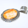 Oval sterling silver pendant is set with orange Spiny Oyster.