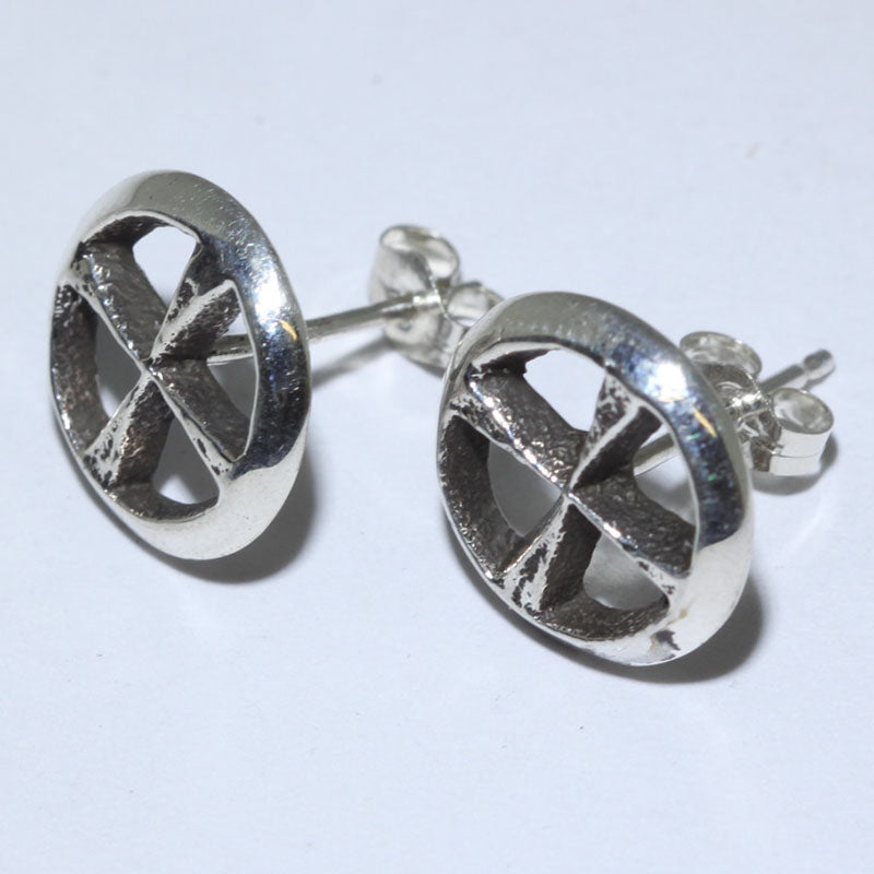 Silver earrings by Aaron Anderson. All handmade with tufa cast, post earring. Star design.