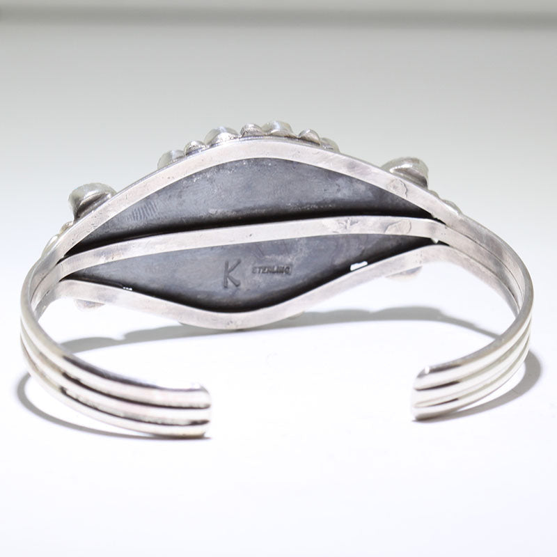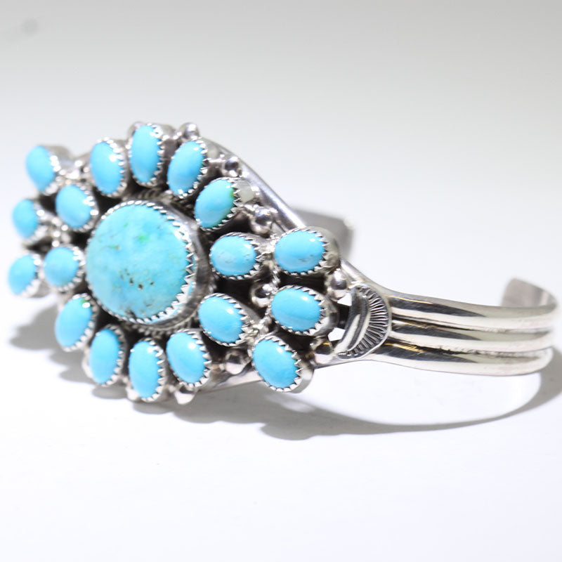 Sterling silver cluster bracelet is set with Natural Kingman Turquoise in the center which is surrounded by Sleeping Beauty Turquoise stones.